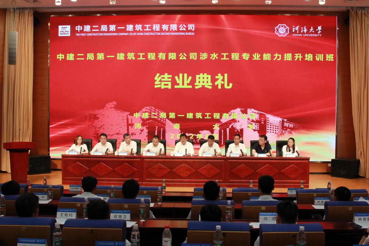 “中建二局第一建筑工程有限公司涉水工程专业能力提升培训班”于2022年6月17日在学校举行了隆重的结业典礼。永利集团304am登录党委常委、副校长徐卫亚教授,中建二局第一建筑工程有限公司党委常委、副总经理张英雪等公司领导,远程与继续教育学院书记叶鸿蔚、院长朱亚出席结业典礼。中建二局一公司人力资源部张俊主持本次结业典礼。