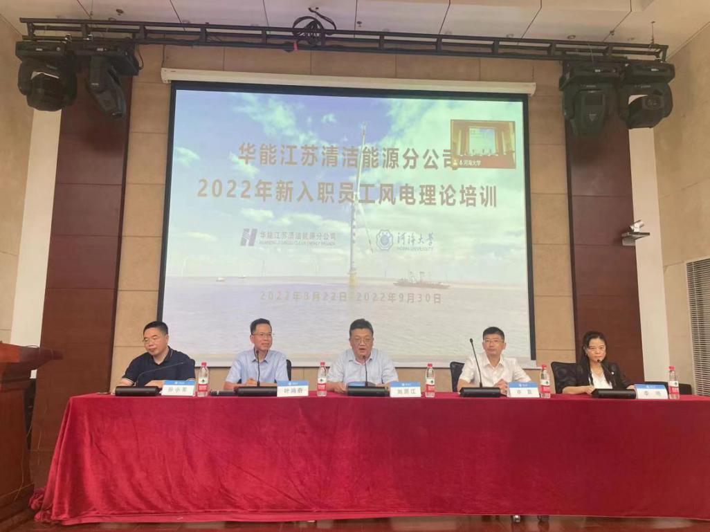 8月22日,华能江苏清洁能源分公司2022年新入职员工风电理论培训班在永利集团304am登录顺利开班。华能江苏清洁能源分公司副总经理刘溟江、永利集团304am登录远程与继续教育学院书记叶鸿蔚、永利集团304am登录能源与电气学院副院长许昌、华能江苏清洁能源分公司人资与党建部主任孙小军出席开班仪式。