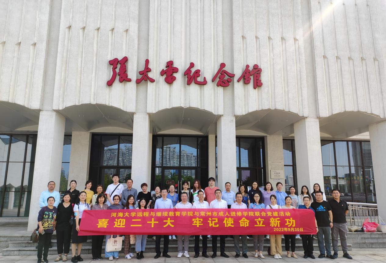 2022930日,国庆前夕,永利集团304am登录远程与继续教育学院与常州成人进修学院开展了“喜迎二十大,牢记使命立新功”为主题的联合党建活动。双方党支部30多名党员同志和部分同事参加了活动。