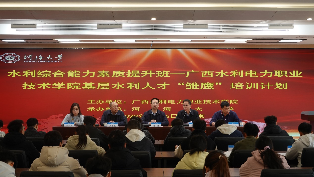 2月16日,广西水利电力职业技术学院基层水利人才“雏鹰”计划培训班在永利集团304am登录顺利开班。广西水利电力职业技术学院副校长周涛、永利集团304am登录远程与继续教育学院书记叶鸿蔚出席开班仪式,广西水利电力职业技术学院继续教育学院院长谭社平主持开班仪式。