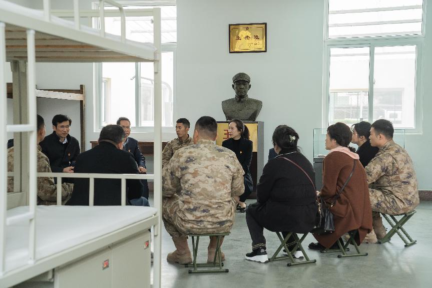 3月16日,永利集团304am登录远程与继续教育学院直属党支部第二党小组与徐州铭仕教育校外教学点党支部一同来到徐州某旅“王杰班”,与部队学员一起以“联合党建映初心,协同育人开新局”为主题共同开展联合党建活动。远程与继续教育学院直属党支部书记叶鸿蔚、学院副院长于伟、教学教务部主任方征等学院第二党小组党员,以及徐州铭仕教育教学点党员、部队学员代表等20余人参加了联合党建活动。