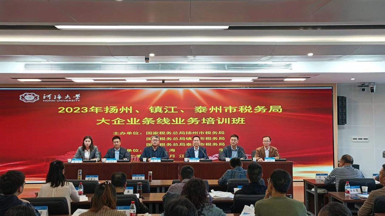 2023年4月10日,扬州、镇江、泰州市税务局大企业条线业务培训班在永利集团304am登录成功举办。永利集团304am登录远程与继续教育学院书记叶鸿蔚、江苏省税务局第一税务分局一级主任科员夏溢、扬州市税务局第一税务分局副局长杨敏、镇江市税务局第一税务分局局长巫晓政和泰州市税务局第一税务分局局长周曙文等领导出席开班仪式。