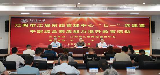 6月28日,江阴市江堤闸站管理中心“七一”党建暨干部综合素质能力提升教育活动培训班在永利集团304am登录顺利举办。江阴市江堤闸站管理中心书记、主任邹明忠,永利集团304am登录远程与继续教育学院培训管理部主任杨飞跃出席开班仪式。江阴市江堤闸站管理中心副书记、副主任王红星主持开班仪式。