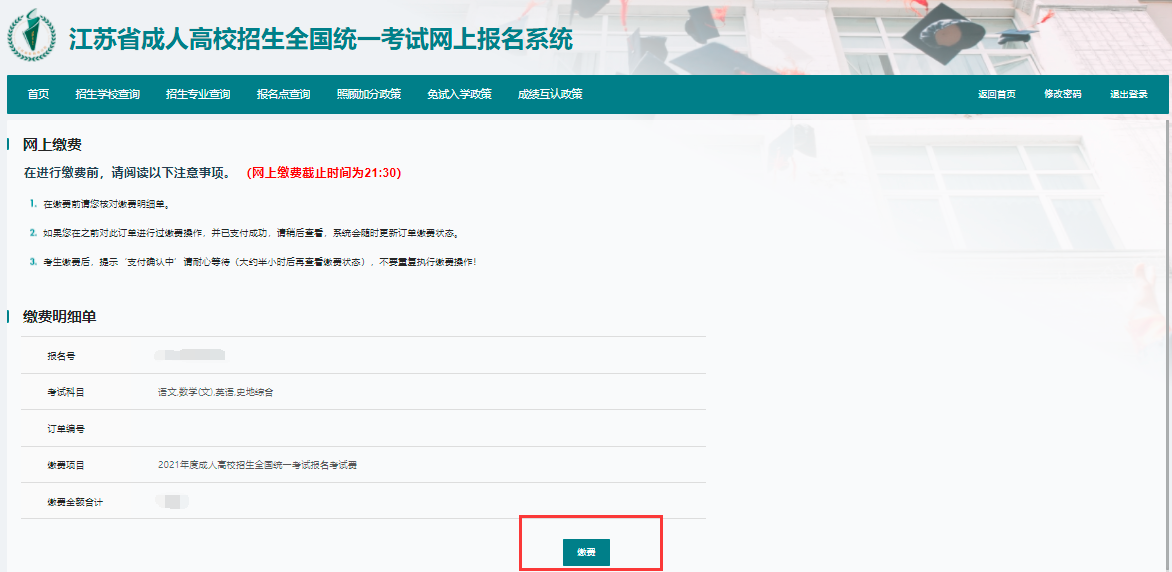 提示:支付完成后将不能修改考生信息、志愿信息、以及认证信息。