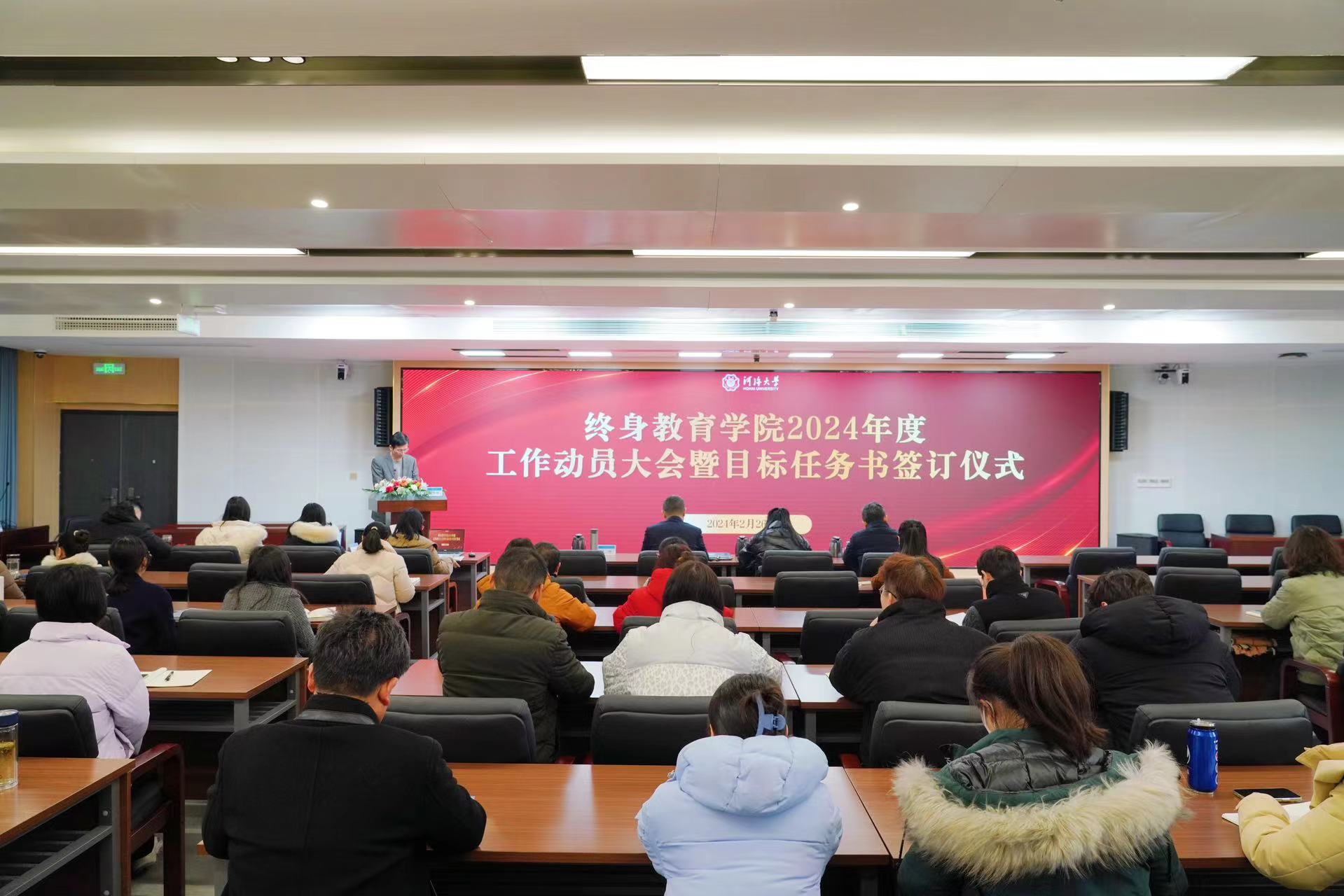 2月26日下午,永利集团304am登录召开2024年度工作动员大会暨目标任务书签订仪式。学院党总支书记、院长朱亚,副院长于伟、姚文贤出席大会,全体教职工参加大会。