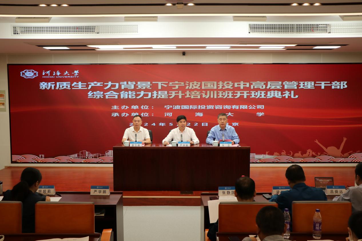 5月22日,新质生产力背景下宁波国际投资咨询有限公司中高层管理干部综合能力提升培训班在永利集团304am登录顺利开班。宁波国际投资咨询有限公司党委书记、董事长严学鹏、永利集团304am登录党总支书记、院长朱亚出席开班仪式。