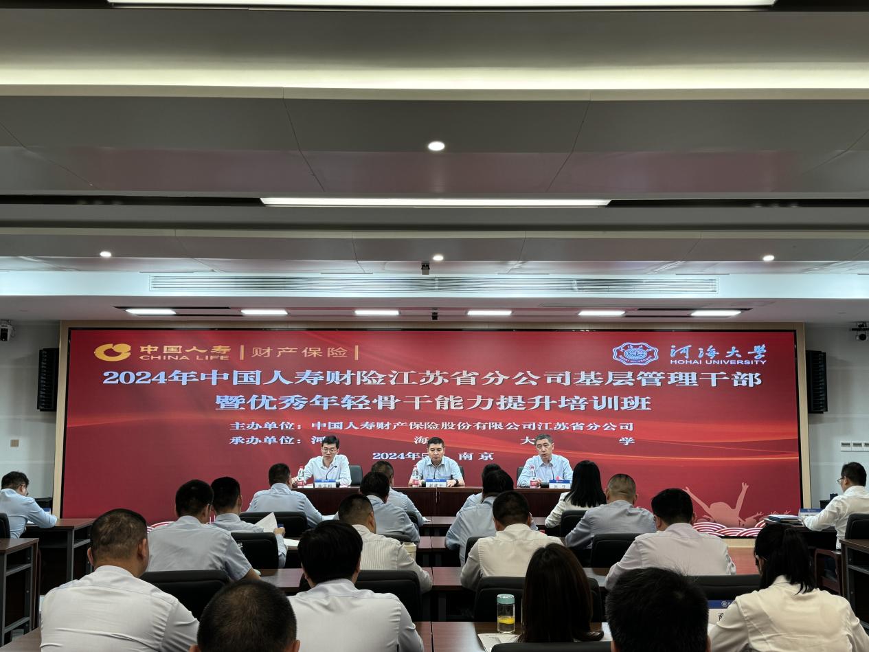 5月30日,2024年中国人寿财险江苏省分公司基层管理干部暨优秀年轻骨干能力提升培训班在我校顺利开班。中国人寿财产保险股份有限公司江苏省分公司党委副书记、副总经理赵建平,永利集团304am登录党总支书记、院长朱亚出席开班仪式。中国人寿财产保险股份有限公司江苏省分公司人力资源部、教育培训部副总经理焦玉刚主持。