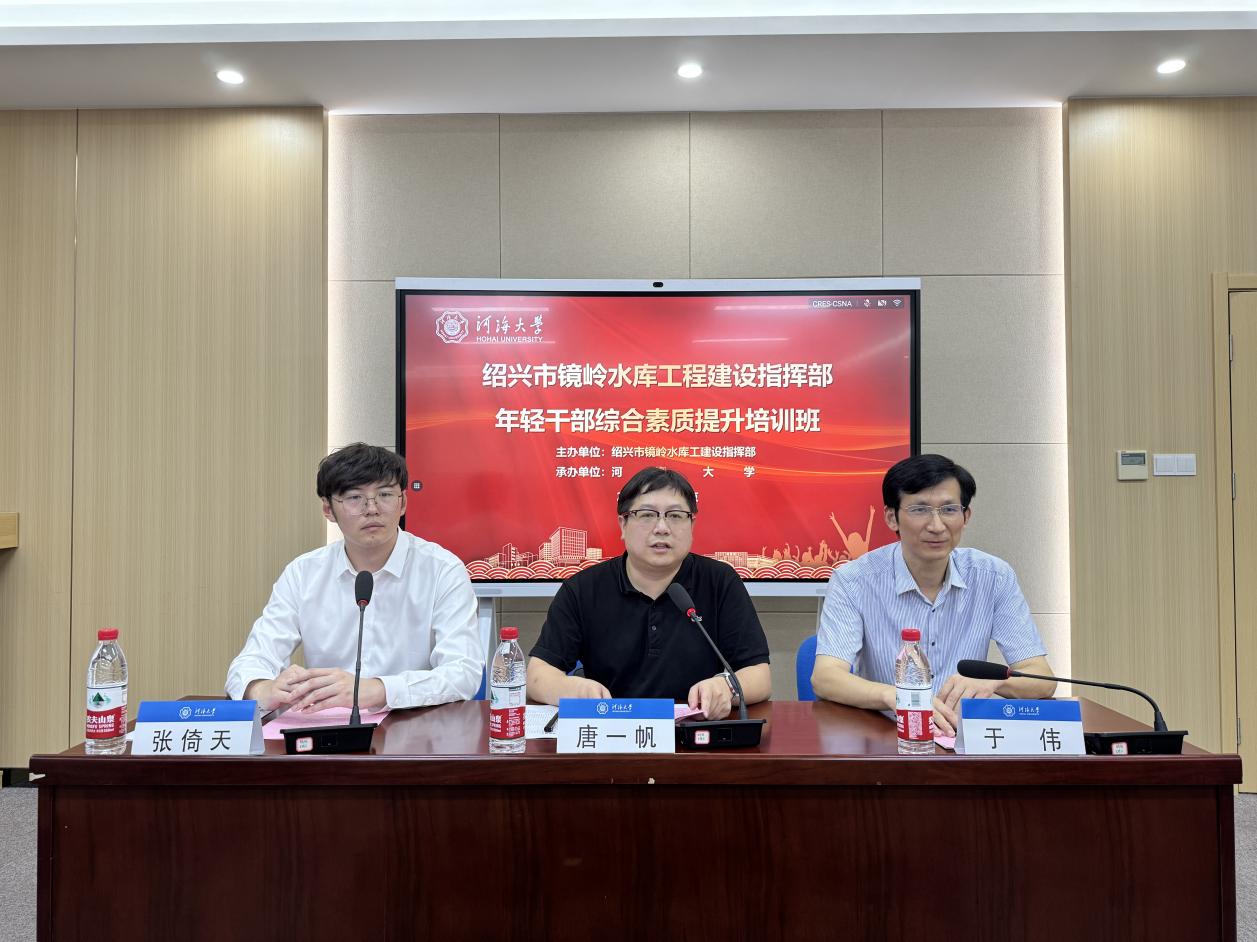 8月9日,绍兴市镜岭水库工程建设指挥部年轻干部综合素质提升培训班在我校顺利开班。绍兴市镜岭水库建设运行中心副主任、指挥部副总指挥唐一帆,永利集团304am登录副院长于伟出席开班仪式并致辞,永利集团304am登录行业教育培训中心张倚天主持开班仪式。