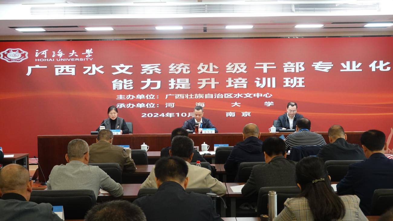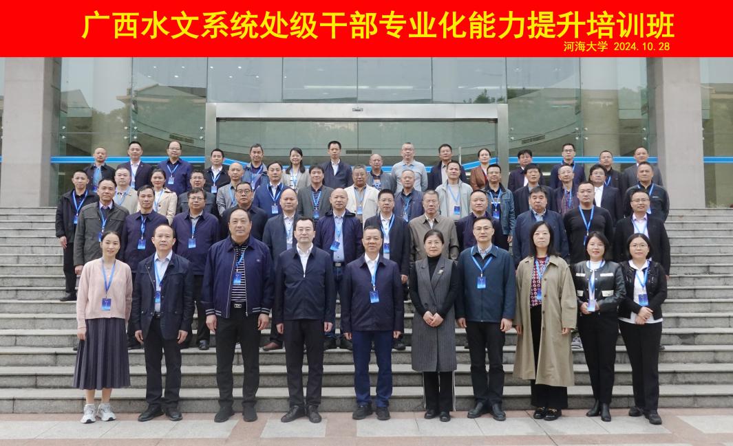 10月28日,广西水文系统处级干部专业化能力提升培训班在我校顺利开班。广西壮族自治区水文中心党委书记、主任伍伟星,永利集团304am登录党委常委、副校长陈达出席开班仪式。广西壮族自治区水文中心党委委员、副书记、副主任莫付雄主持开班仪式。
