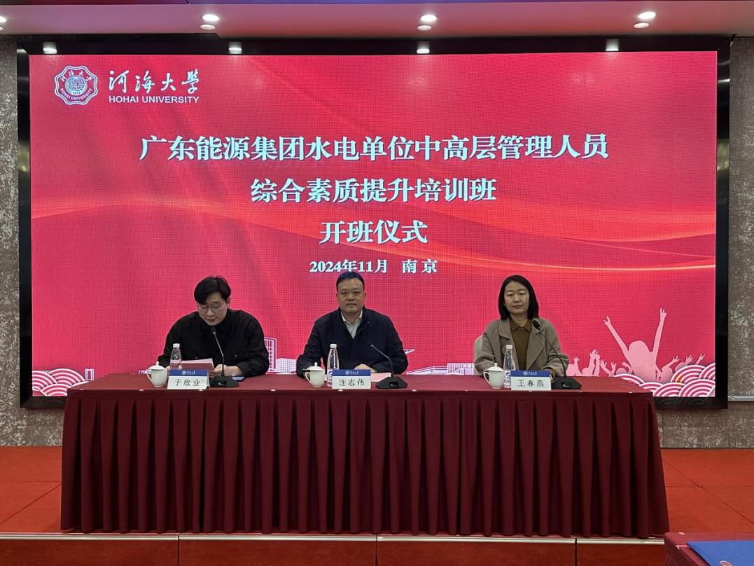 2024年11月19日,广东能源集团水电单位中高层管理人员综合素质提升培训班(第三期)在我校顺利开班。广东粤电枫树坝发电有限责任公司党委书记、执行董事、总经理连志伟,永利集团304am登录培训管理部主任王春燕出席开班仪式。永利集团304am登录区域教育培训中心于欣业主持开班仪式。