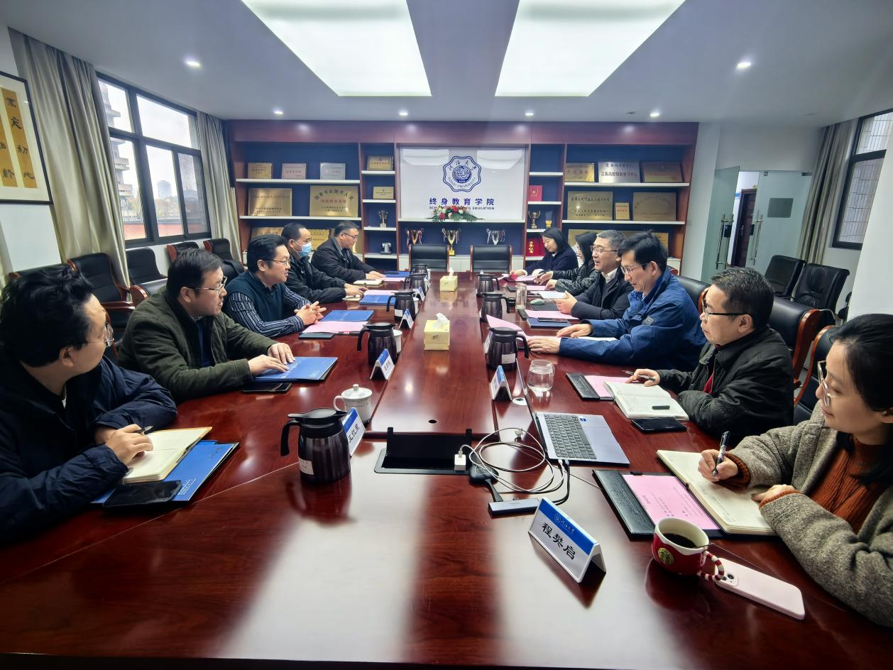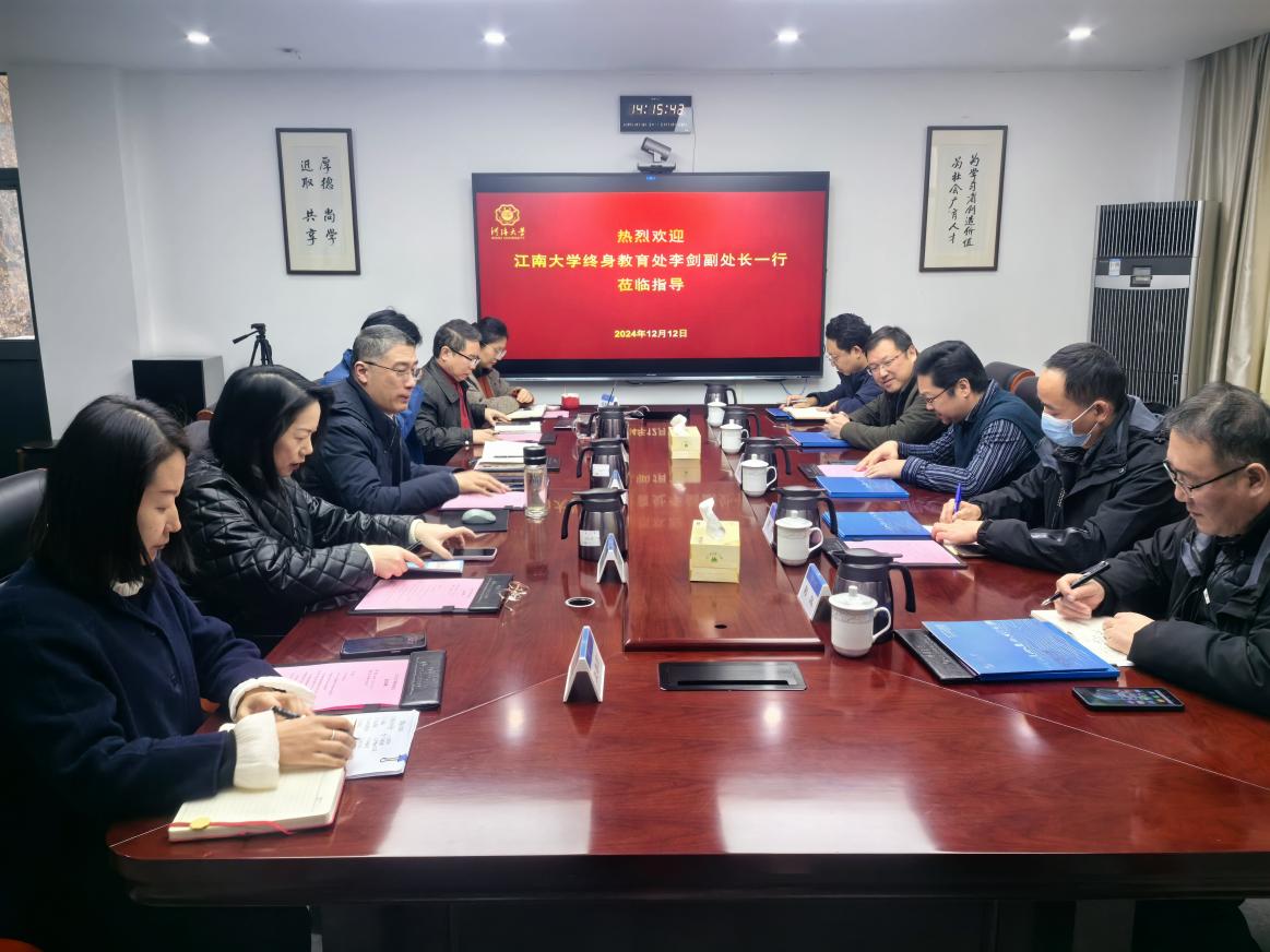 12月12日下午,江南大学终身教育处副处长李剑,继续教育学院副院长周伟、惠恭健等一行5人前来永利官网调研交流。学院党总支书记、院长朱亚,副院长于伟、姚文贤出席调研座谈会。