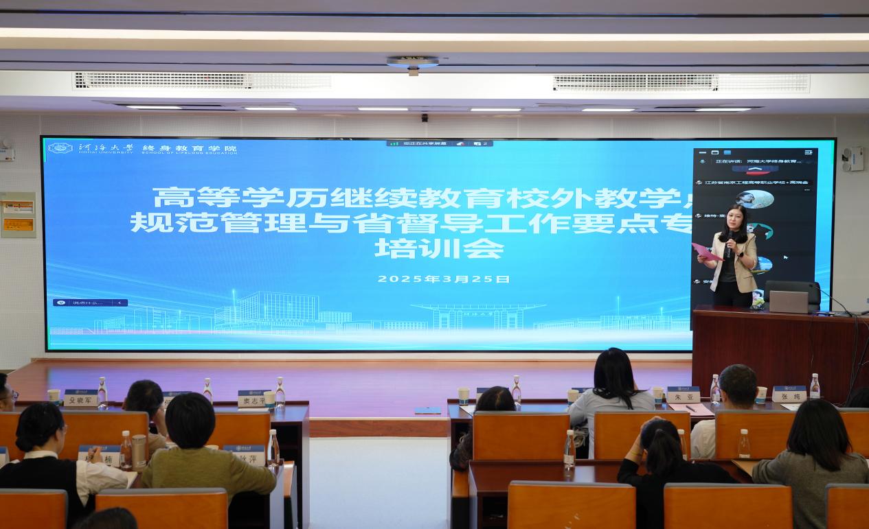 朱亚在讲话中指出,党的二十大对继续教育高质量发展作出重要部署,《教育强国建设规划纲要(2024-2035年)》将构建“泛在可及的终身教育体系”列为教育强国建设“八大体系”之一。近年来,教育主管部门以“全面规范、提高质量”为主线推进继续教育新政,对普通高校学历继续教育改革作出全面部署,旨在推动形成办学结构合理、质量标准完善、办学行为规范、监管措施有效、保障机制健全的新格局。朱亚强调,高等学历继续教育必须深化教育改革,推动由规模扩张向规范性、内涵式、高质量发展转变。自2021年以来,学院持续完善校外教学点管理机制,通过四年不懈努力,建立了较为完备的监督评估体系。各教学点要严格对照江苏省督导要求,深入开展自查自纠,切实提升教学质量和管理水平。