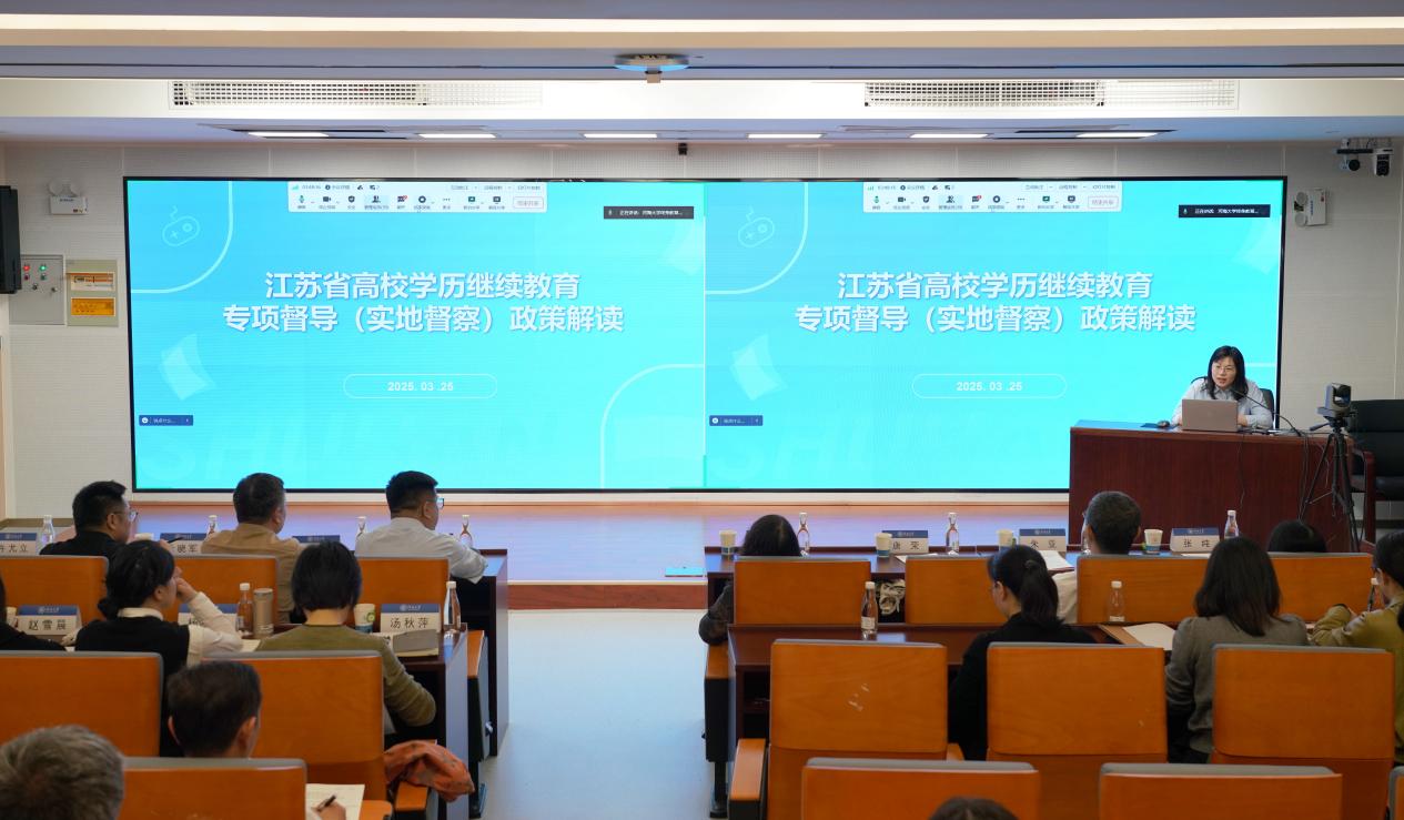 此次培训会特邀江苏省督导专家、江苏开放大学发展规划处处长唐荣作专题讲座。唐荣结合丰富的督导经验,紧扣“江苏省高校学历继续教育专项督导(实地督察)政策解读”主题,依据教育部政策导向、江苏省发展现状与需求,高屋建瓴地剖析了高等教育学历继续教育未来趋势。她围绕制度设计、平台监管、专项整治和专项督导四个维度,全方位介绍了当前的政策背景,并对照《江苏省高校学历继续教育专项督导实施方案》,从主体责任、基本条件、教学管理、师资队伍、经费管理五个核心方面,逐一拆解了专项督导的各项指标、观测点与常见问题,描绘出教学质量提升的清晰路径。针对实地督察的准备工作要点,她从强化顶层设计的前瞻视角出发,系统梳理了加强专业建设、规范教学管理、汇编规范有序三大举措。本次讲座有理论、有方法、有实例,内容丰富,指导性强,为参会者带来了全新的思考维度与实践方向,提供了兼具理论高度与实践价值的重要指引。