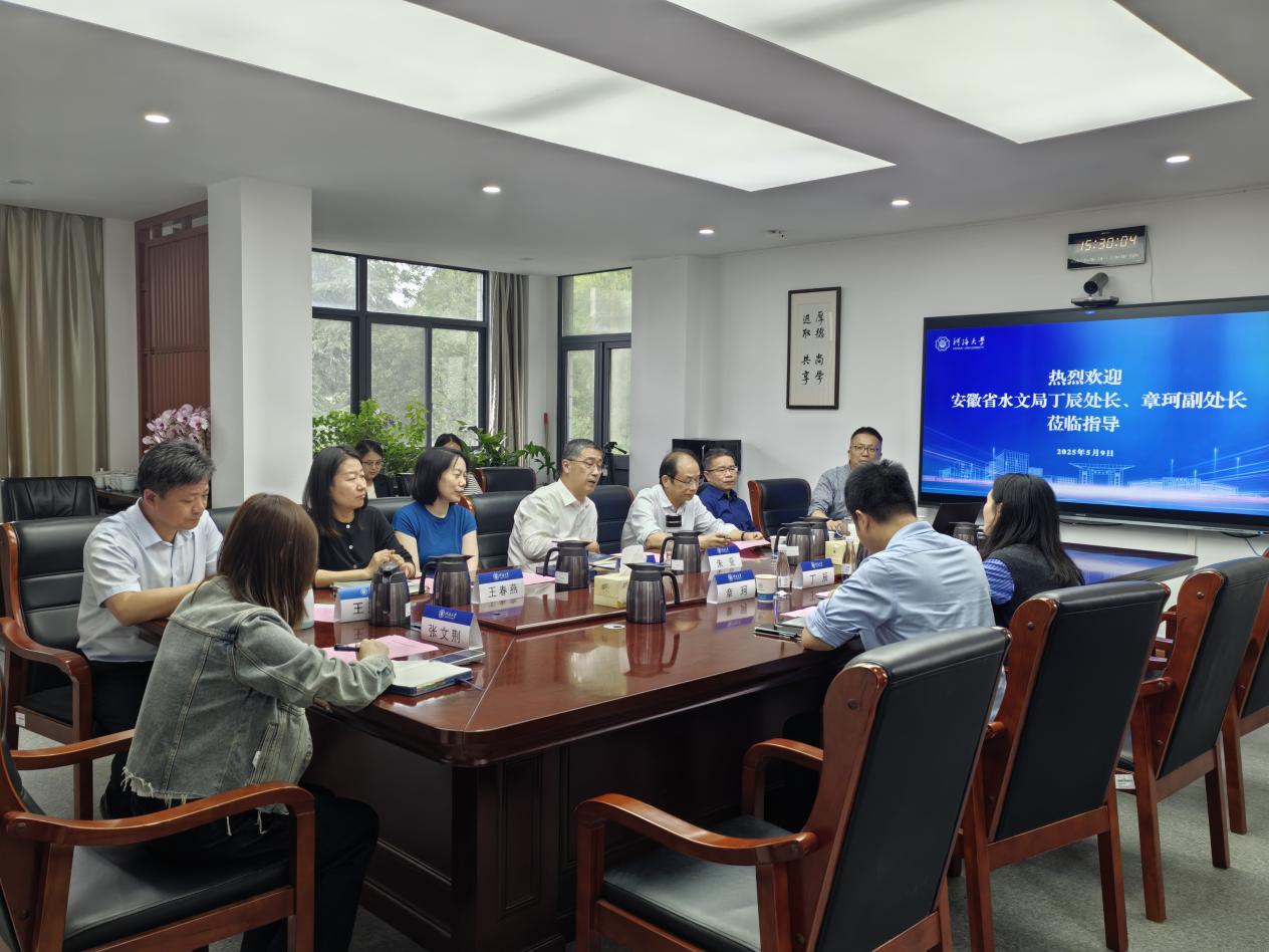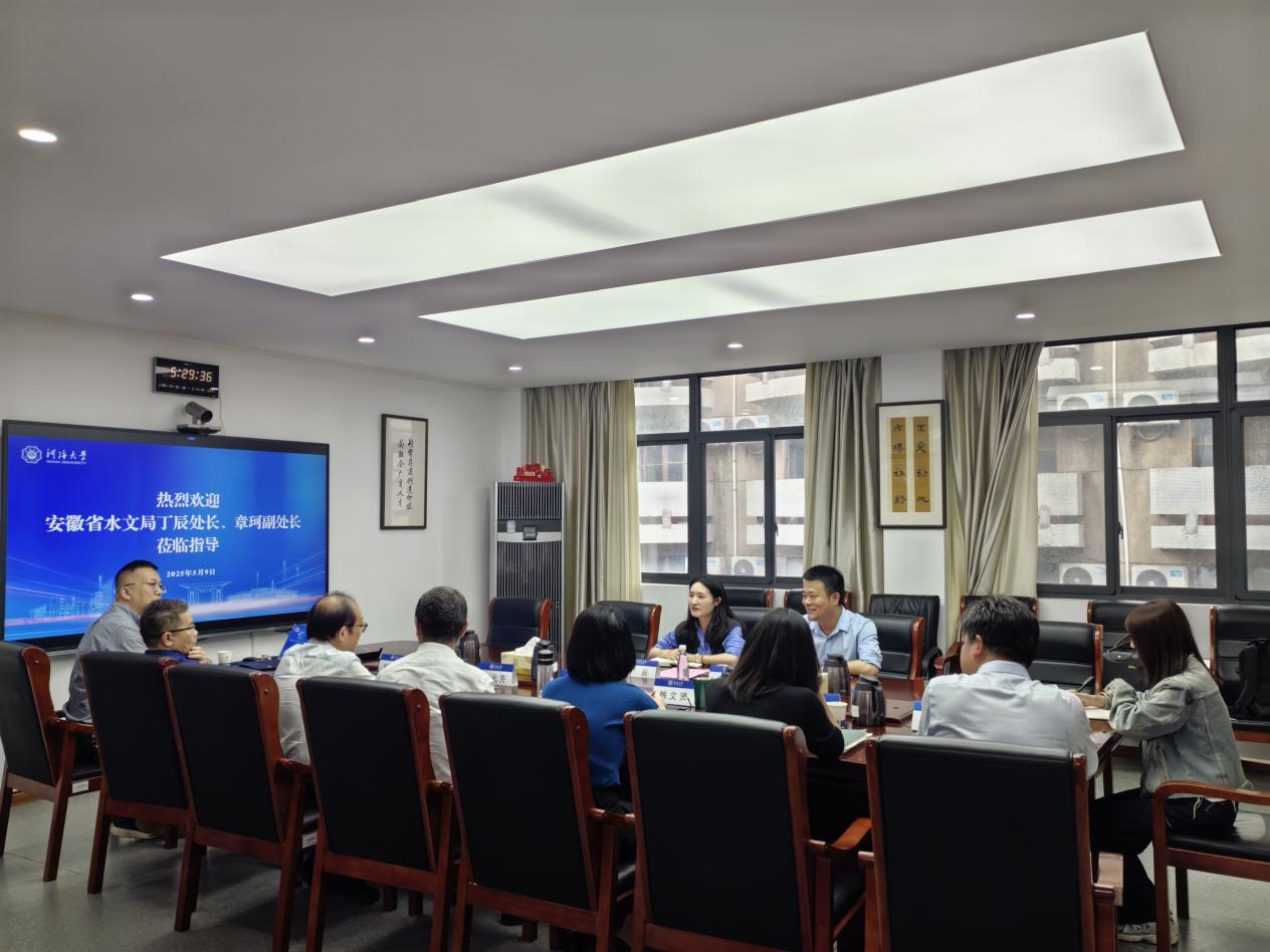 5月9日下午,安徽省水文局组织人事处处长丁辰、站网监测处副处长章轲一行到访我校调研交流。永利集团304am登录党总支书记、院长朱亚,副院长姚文贤,水文水资源学院原书记、教授陈元芳,以及永利集团304am登录相关部门(中心)负责人出席座谈会。