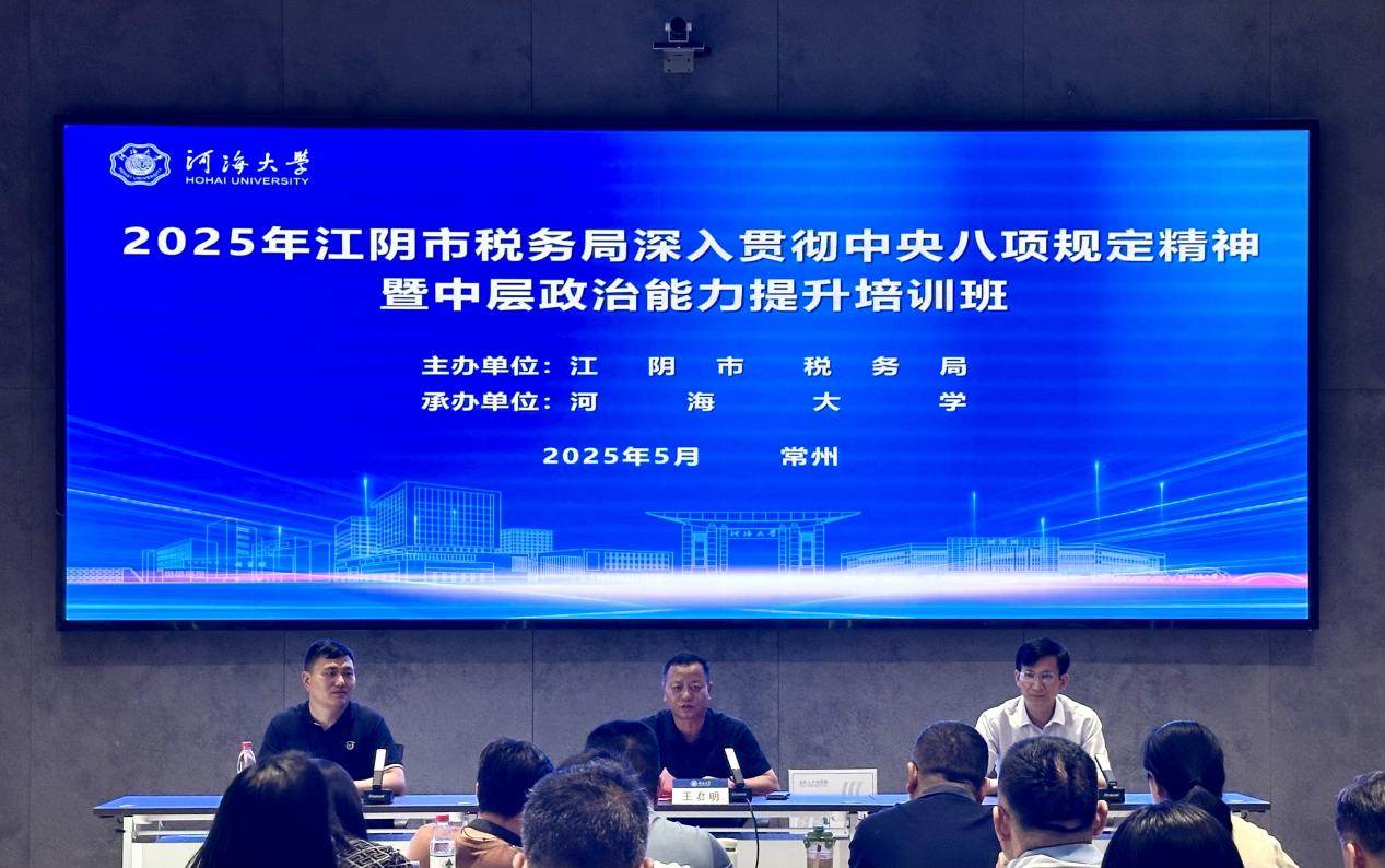 5月26日,2025年江阴市税务局深入贯彻中央八项规定精神暨中层政治能力提升培训班在我校常州校区顺利开班。国家税务总局江阴市税务局党委委员、副局长王君明,永利集团304am登录副院长于伟出席开班仪式。永利集团304am登录区域教育培训中心顾名成主持开班仪式。