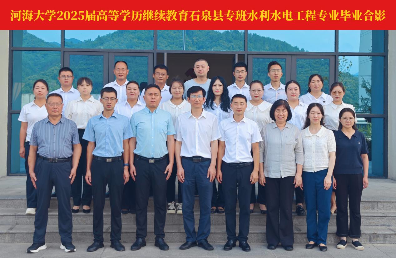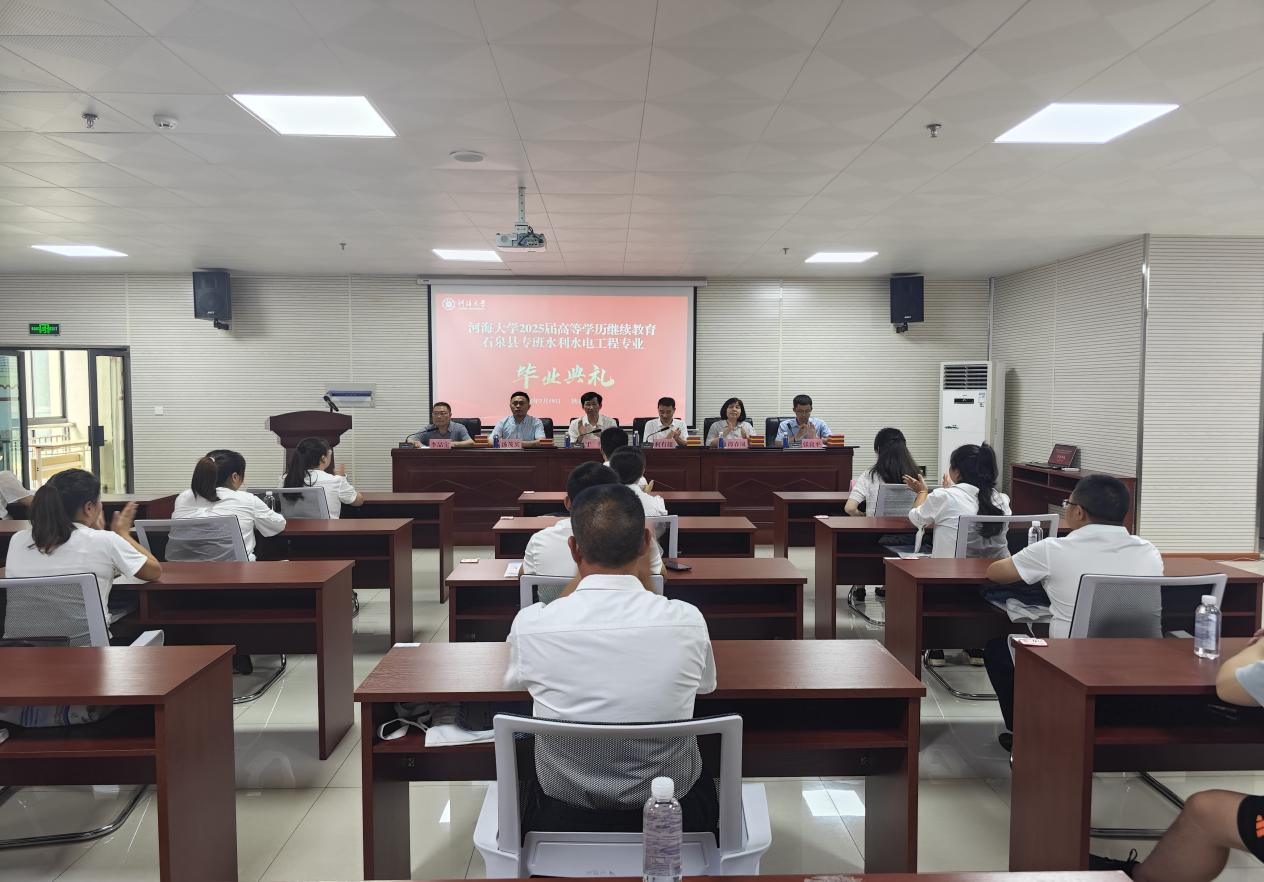 7月19日,永利集团304am登录2025届高等学历继续教育石泉县专班水利水电工程专业毕业典礼在中共石泉县委党校举行。中共石泉县考核办常务副主任柯有超,中共石泉县委党校副校长张良平,校友代表、石泉县水利局三级调研员、永利集团304am登录继续教育校友会副会长李品宝,永利集团304am登录副院长于伟,永利集团304am登录土木与交通学院办公室主任、石泉县池河镇党委副书记(挂职)汤茂买出席毕业典礼。中共石泉县委组织部、县委党校、永利集团304am登录相关部门负责同志参加典礼。