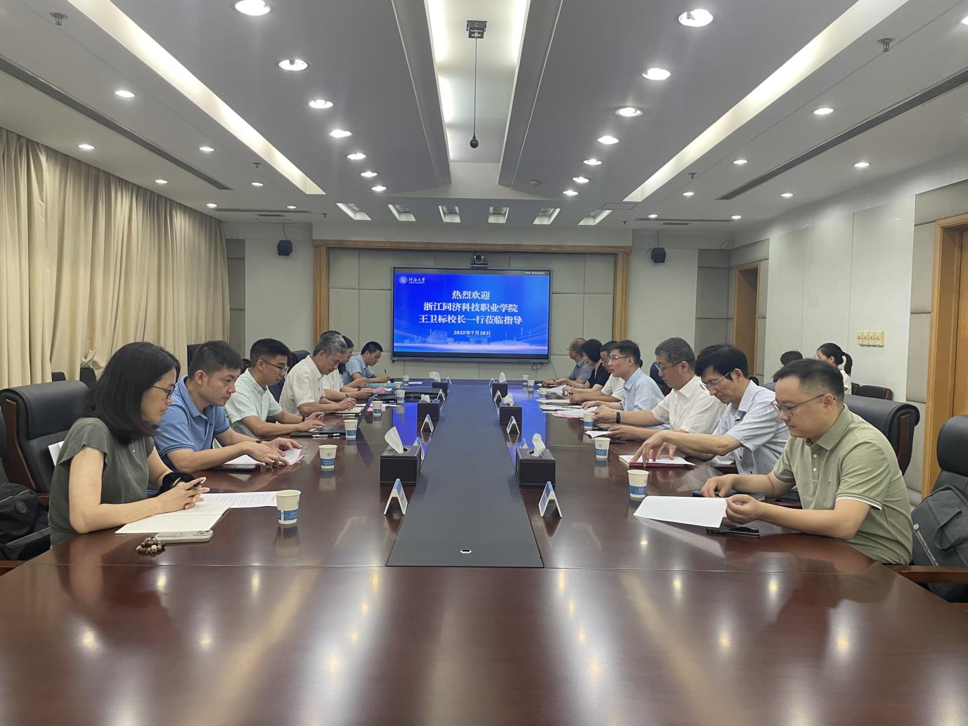 7月28日上午,浙江同济科技职业学院校长王卫标、副校长姜伟一行莅临永利集团304am登录调研交流。永利集团304am登录党委常委、副校长沈扬出席座谈会并致辞。会议由永利集团304am登录党总支书记、院长朱亚主持。