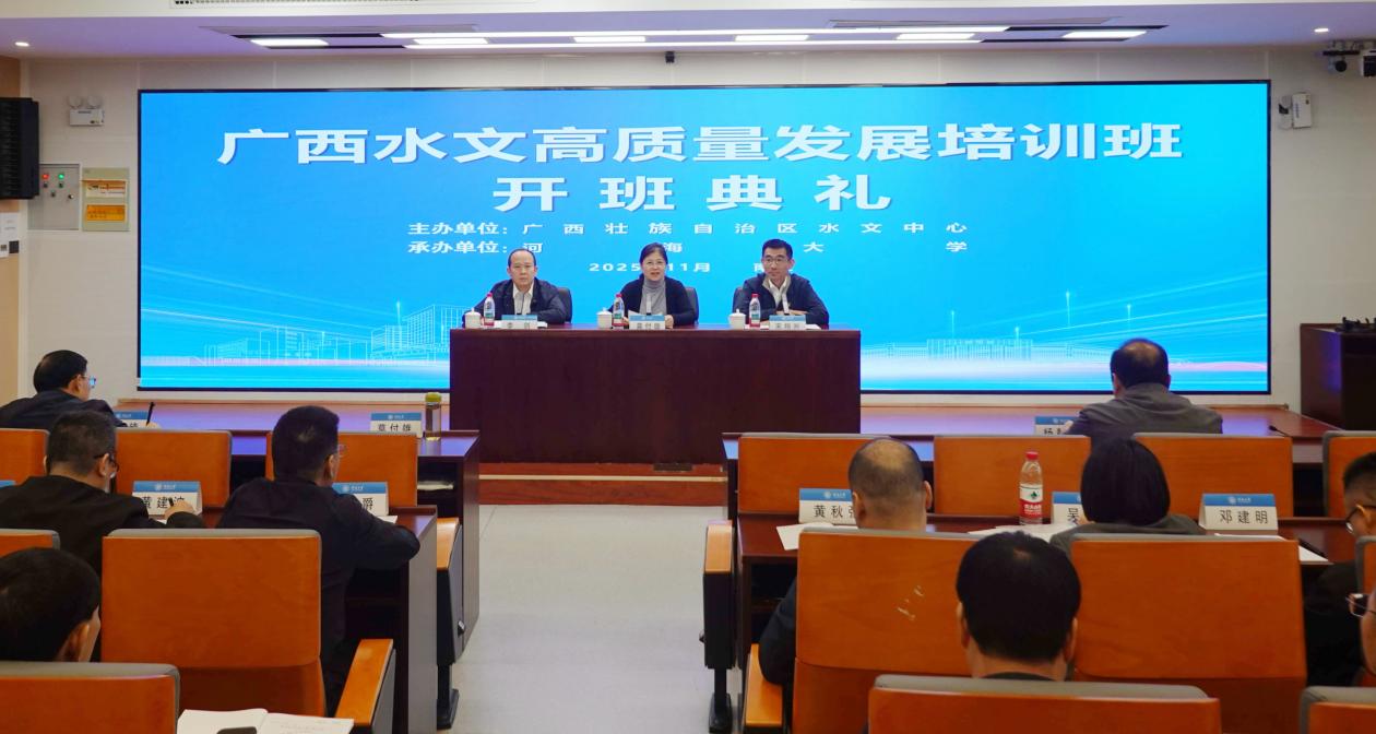 为深入贯彻落实新时代国家治水方针,全面提升水文系统干部队伍的专业素养与履职能力,11月3日,由广西壮族自治区水文中心主办、永利集团304am登录承办的“广西水文高质量发展培训班”在永利集团304am登录顺利开班。广西壮族自治区水文中心党委副书记、副主任、二级巡视员莫付雄,永利集团304am登录党委常委、副校长宋翔洲出席开班仪式。仪式由广西壮族自治区水文中心党委委员、副主任李剑主持。