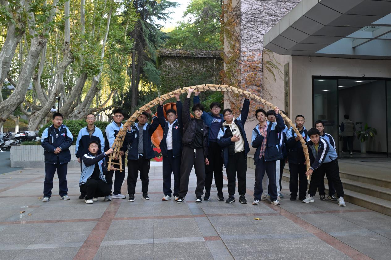 在动手实践环节,同学们分组进行“榫卯桥梁模型”搭建。从试拼、修配到加载、归位,桥梁在一钉一卯间逐渐成形。无锡太湖中学李瑶瑶与队友在成功搭建后激动击掌:“0.1毫米的误差也可能导致桥梁倒塌,我第一次感受到‘认真’是有声音的——那一声‘咔哒’就是最好的证明。”导师现场评审,评选出“最佳结构奖”。