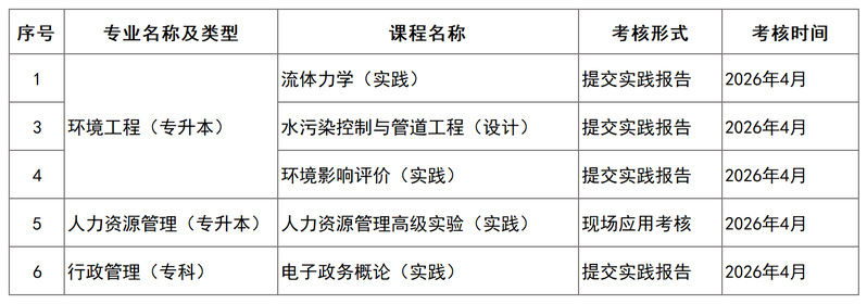 为顺利推进实践课程考核工作,现将本次6门实践课程的考核相关安排通知如下。本通知面向通过2026年上半年实践报名资审并缴费的自考考生,请相关考生认真阅读并遵照执行。